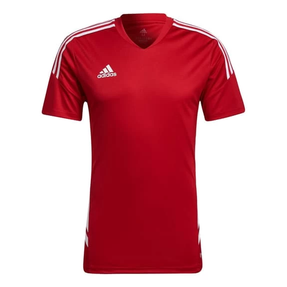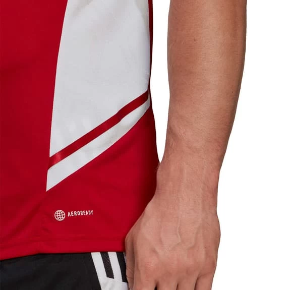 The adidas Condivo 22 Short-Sleeved T-Shirt offers comfort and freedom of movement. It features mesh side panels for airflow and a male-specific ergonomic design. Breathable Aeroready technology keeps your skin dry at all times. This product is made from 100% recycled material.