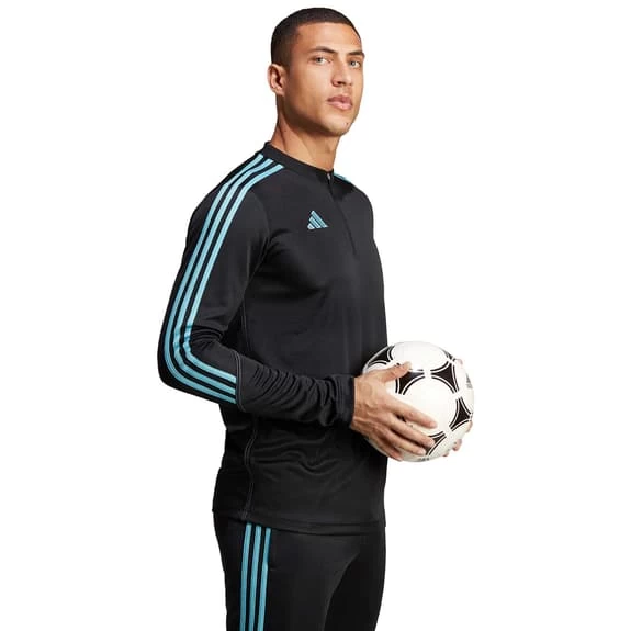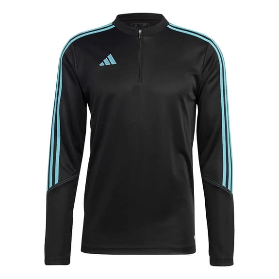 The adidas Tiro 23 Club sweatshirt has a thumbhole and chest-length zip to protect you from the cold. The soft knit fabric with breathable AEROREADY technology keeps your skin dry and provides great comfort until you get back to the changing room. This garment is made from 100% recycled material.