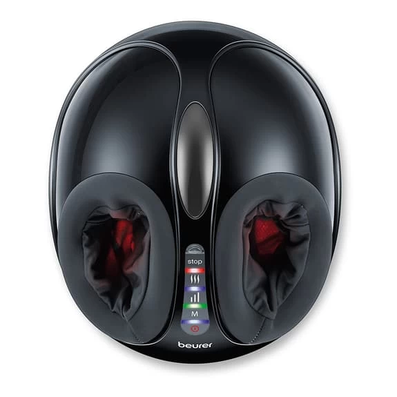 The Beurer FM 90 foot massager will help soothe tired muscles and relieve oppression. The adjustable intensity allows you to choose between 3 different massage levels. Our massager can massage the toes, soles, ankles and heels to relieve tension and oppression. The combination of upper air chambers and lower massage nodes give you a totally relaxing massage experience. Its heat function allows you to experience a warm massage to help increase circulation.