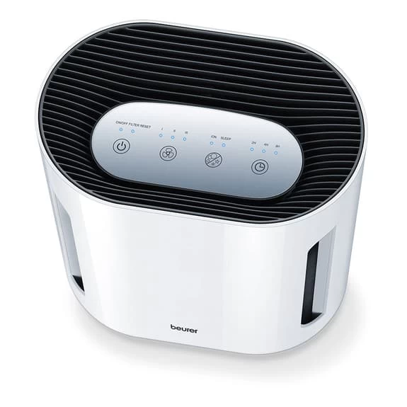 The Beurer LR 210 Air Purifier cleans the air using a 3- layer filtration system and offers a filtration performance of 99.95%. It is equipped with an illuminated control panel where the timer function and the 3 purification levels can be viewed. You can place it in rooms up to 10- 26m2 and enjoy a safe and healthy environment. With the purifier you will remove house dust, odours, animal hair, pollen and bacteria from the air, and also with its optional ionic function you can further purify the air.