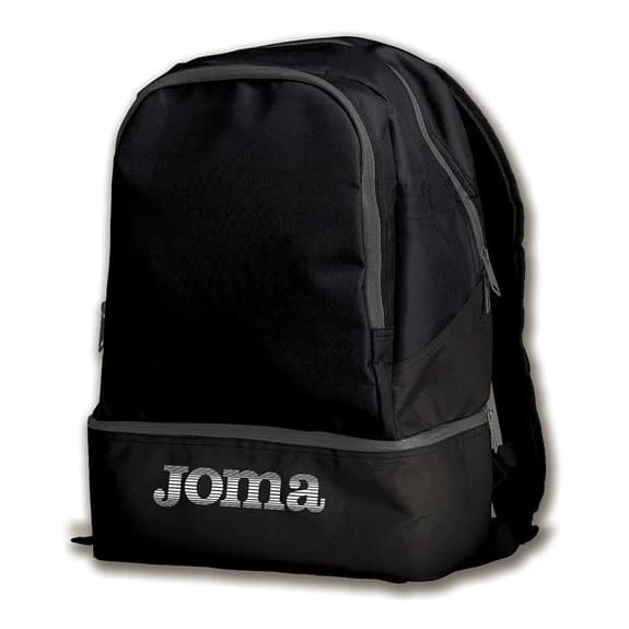 The Joma Estadio III backpack comes with a reinforced back and an internal shoe compartment. The logo is screen-printed.