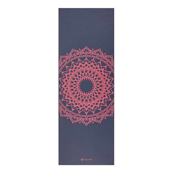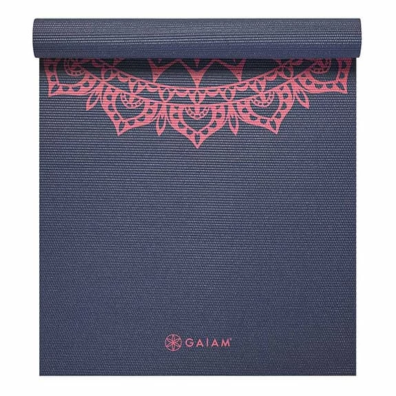 The Gaiam Fleur Marrakesh Mat with 4 mm thick cushioning and a textured surface keeps you grounded while you move in your practice. Latex-free PVC is non-toxic and free of the six most harmful phthalates.