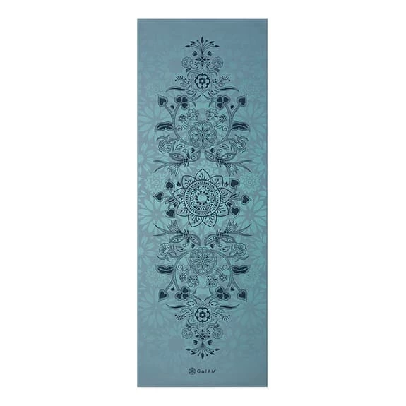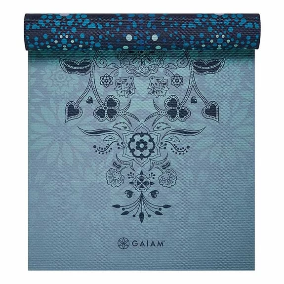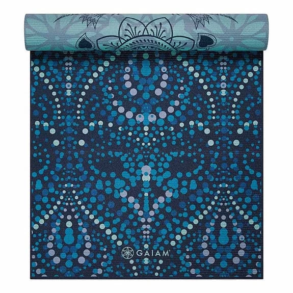 The Gaiam Reversible Mystic Sky Mat with 6 mm thick cushioning and a textured surface keeps you grounded while you move in your practice. Latex-free PVC is non-toxic and free of the six most harmful phthalates.