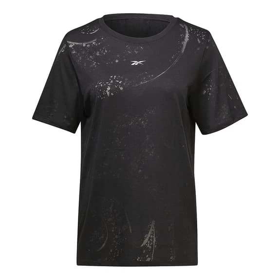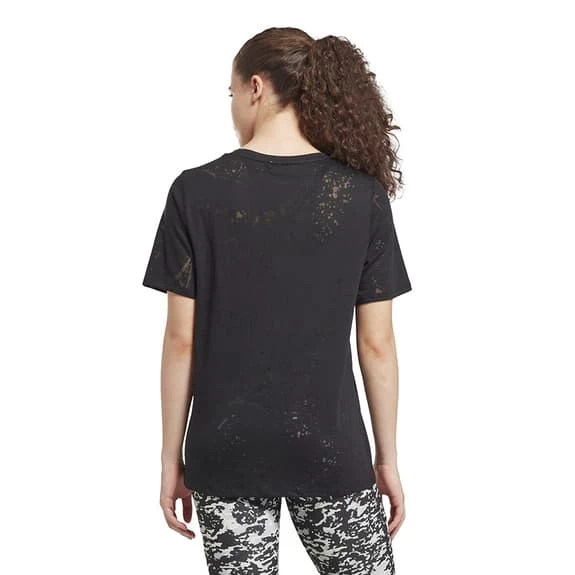 The Reebok Burnout women’s short sleeve T-shirt is made with Speedwick fabric that wicks sweat away from your skin and helps you stay dry and focused. The burnout pattern creates a subtle texture. This garment is made with at least 30% recycled or reused materials.