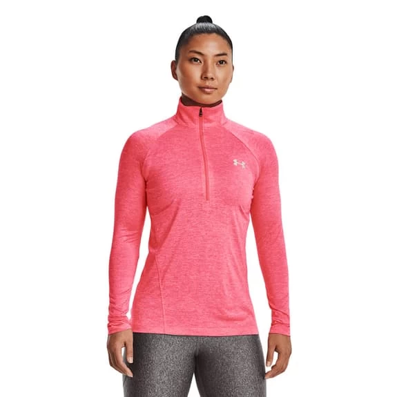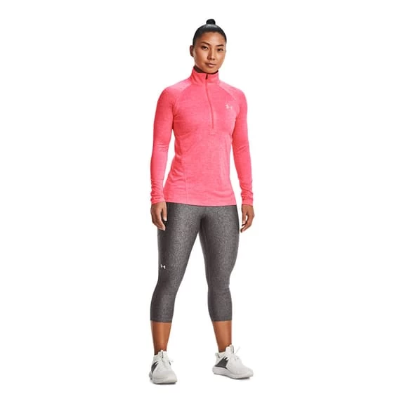 The Under Armour Tech Half Zip sweatshirt for women is made with breathable fabric that wicks sweat and dries quickly to keep you comfortable while you work out. Its design with high collar and half-zip ensures total freedom of movement and a very modern sporty style.